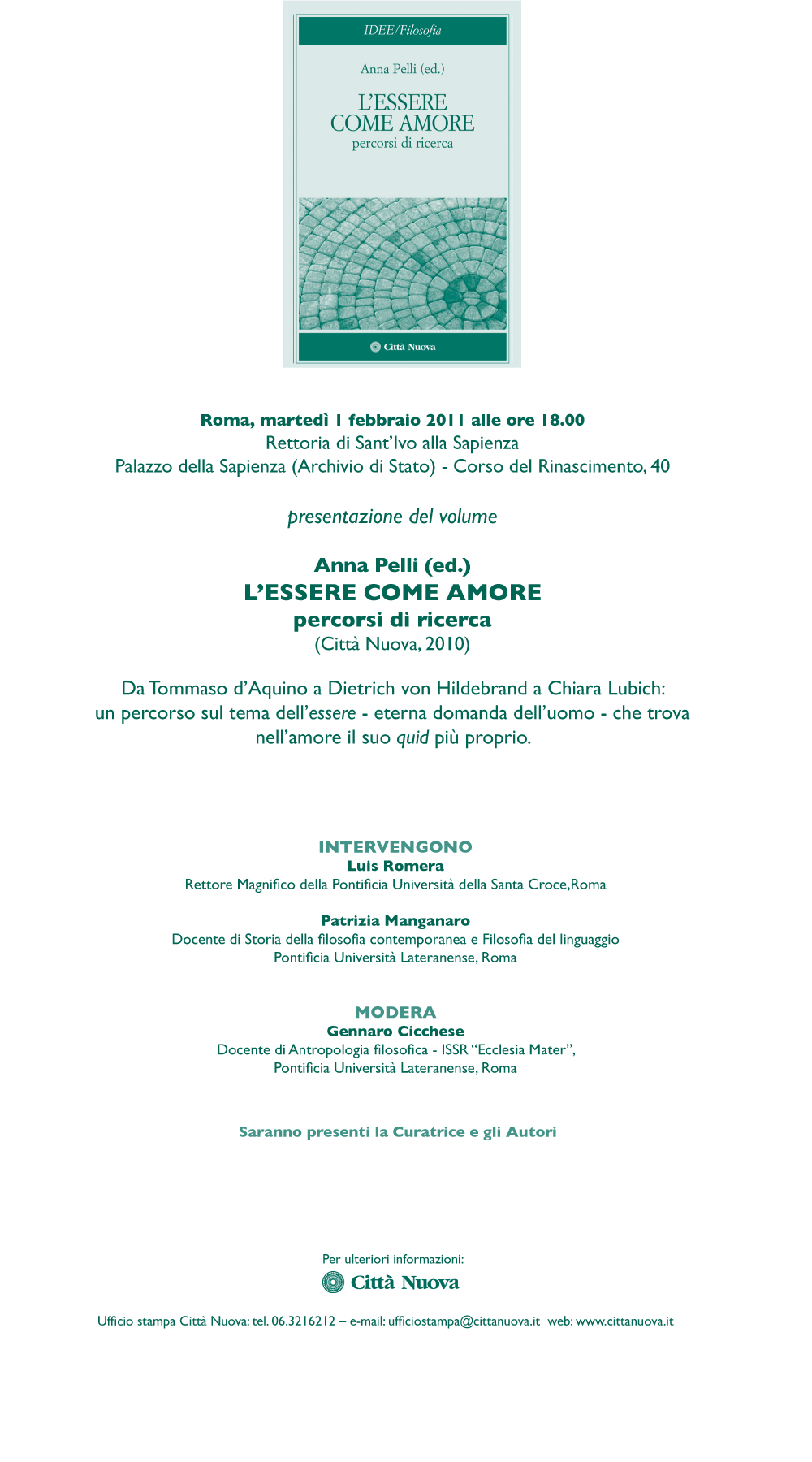 L’ESSERE COME AMORE PERCORSI DI RICERCA (Città nuova 2010) Condividi: Condividi su X (Si apre in una nuova finestra) X Condividi su Facebook (Si apre in una nuova finestra) Facebook Mi piace Caricamento... Lascia un commento Cancella risposta Δ
