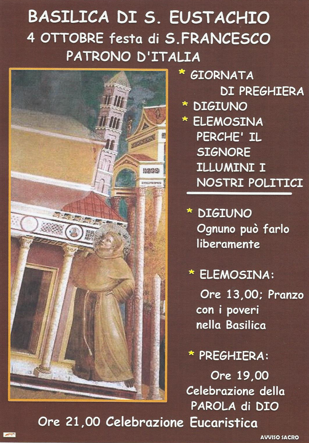 In occasione della festa di S. Francesco d’ Assisi, Patrono d’Italia,