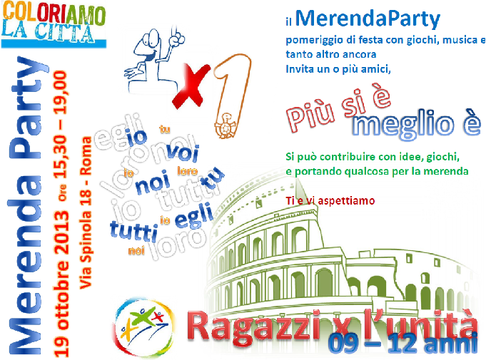 E’ un’occasione pensata per dare a tutti i/le bambini/e di età dai 9 ai 12 anni la possibilità di trascorrere un pomeriggio con giochi di gruppo incentrati sul tema :“COLORIAMO LA CITTÀ”