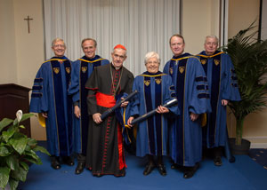 La cerimonia, alla presenza di varie autorità e dell’intero Consiglio di amministrazione della Notre-Dame University che, proprio in questi giorni, svolge i suoi lavori presso la sede romana dell’università cattolica americana, è stata sobria e significativa al tempo stesso. «Il dottorato che viene oggi conferito a queste due personalità non è tanto un onore, ma il riconoscimento di quanto è già in loro presente e, dunque, nulla aggiunge. È piuttosto un onore per noi che compiamo questo atto», ha sottolineato ancora il prof. Burish.