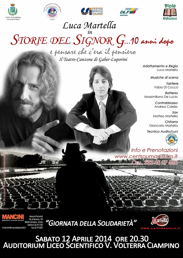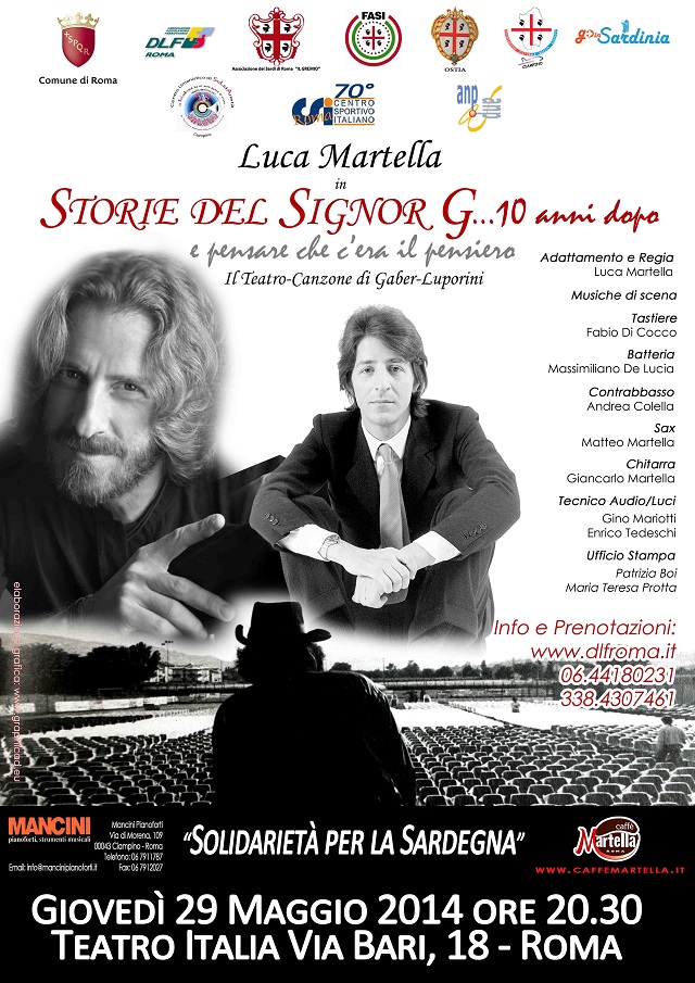 In partenza la tourneè di Luca Martella Omaggio al Teatro-Canzone di Gaber – Luporini