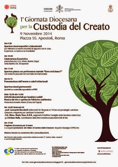 Il 9 novembre a piazza SS.Apostoli, Roma celebrerà la sua prima giornata della custodia del creato. musica, stand e laboratori sui nuovi stili di vita.
