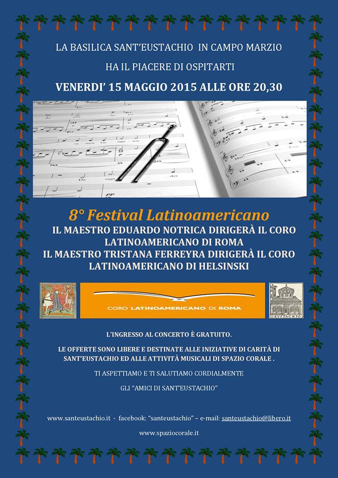 VENERDI’ PROSSIMO, 15 MAGGIO 2015, alle ore 20,30 CONCERTO del Coro Latinoamericano di ROMA e del Coro Latinoamericano di HELSINKI nella BASILICA di SANT’EUSTACHIO