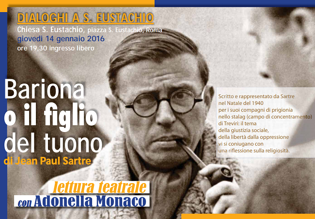 S.Eustachio 14 gennaio “Bariona o il figlio dell’uomo” di Jean Paul Satre. Lettura teatrale con Adonella Monaco. Ore 19:30 ingresso gratuito Condividi: Fai clic per condividere su X (Si apre in una nuova finestra) X Fai clic per condividere su Facebook (Si apre in una nuova finestra) Facebook Mi piace Caricamento... Lascia un commento Cancella risposta Δ