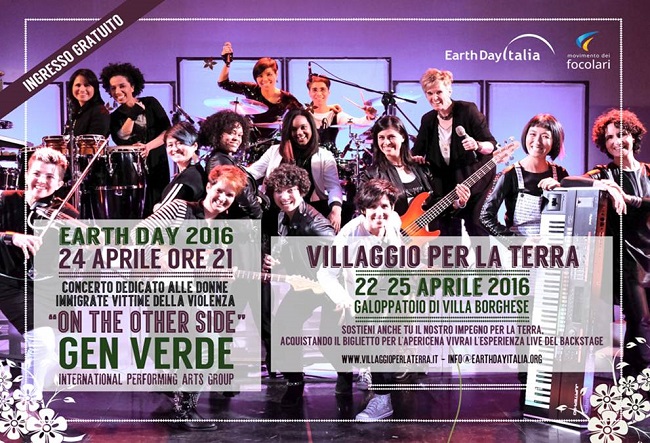 On the Other Side, il nuovo concerto del Gen Verde – International Performing Arts Group tutto al femminile – che percorre il mondo in poco tempo, arriva a Roma in Mariapoli nella cornice del Villaggio per la terra promosso da Earth Day Italia e Movimento dei focolari dal 22 al 25 aprile 2016 al Galoppatoio di Villa Borghese.