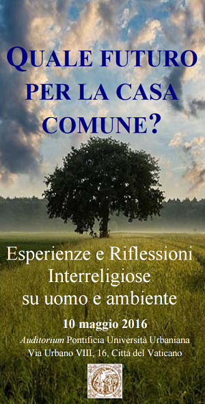 QUALE FUTURO PER LA CASA COMUNE? Esperienze e Riflessioni Interreligiose su uomo e ambiente. 10 maggio 2016 Auditorium Pontificia Università Urbaniana Via Urbano VIII, 16, Città del Vaticano PDF brochure-convegno-interreligioso-maggio-2016 Condividi: Condividi su X (Si apre in una nuova finestra) X Condividi su Facebook (Si apre in una nuova finestra) Facebook Mi piace Caricamento... Lascia un commento Cancella risposta Δ