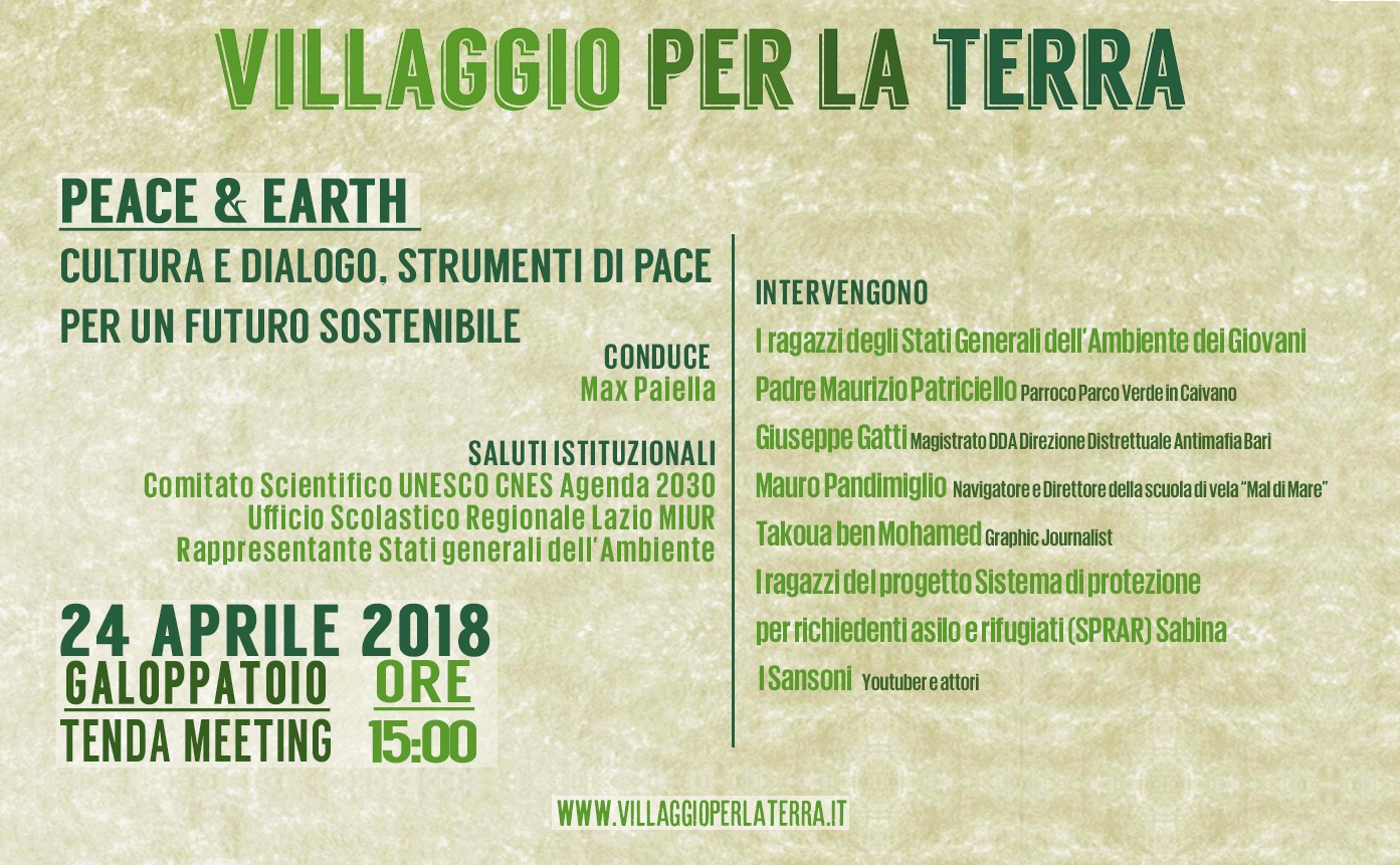 - TEENS – Martedì 24 Aprile 15:00 – 16:00 – GALOPPATOIO » TENDA MEETING – TALKSHOW – PEACE & EARTH: FESTIVAL EDUCAZIONE ALLA SOSTENIBILITA’. Cultura e dialogo, strumenti di pace per un futuro sostenibile. digital media zone – insieme con Max Paiella di Radio 2, i giovani degli Stati Generali dell’Ambiente dei giovani faranno un punto su tutto quello che è il pianeta in questo momento e tutto quello che si vorrebbe cambiare secondo gli obiettivi dell’agenda 2030 . Approfondisci
