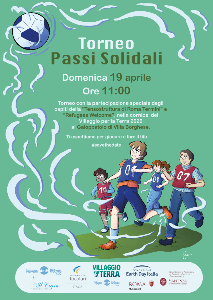 Nella cornice del Villaggio per la Terra 2026, al Galoppatoio di Villa Borghese, il torneo di calcetto solidale che unisce sport, amicizia e partecipazione. Con la partecipazione speciale degli ospiti della Tensostruttura di Roma Termini e di Refugees Welcome, una mattinata di gioco e tifo per vivere il calcio come occasione di incontro, inclusione e condivisione.