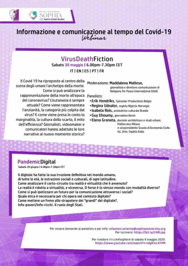 Per il Ciclo di Webinar a cura di NetOne e Istituto Universitario Sophia dal titolo โInformazione e Comunicazione al tempo del Covid 19โ, il 30 Maggio su รจ svolto lo webinar dal titolo โVirusDeathFictionโ Il Covid 19 ha riproposto al centro della scena degli umani lโarchetipo della morte. Come si puรฒ analizzare la rappresentazione della... Continua a leggere →
